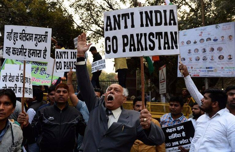 shout slogans against Jawaharlal Nehru University (JNU) and the late